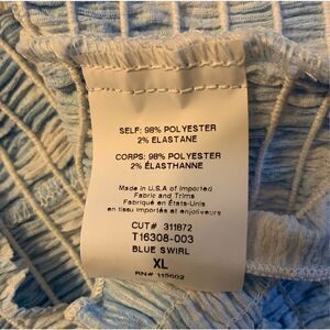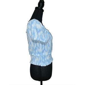 Blue swirl smocked crop top. Short sleeve with elastic cuff. 98% polyester/2% spandex. Size: XL. NWT.