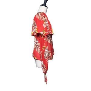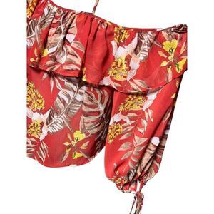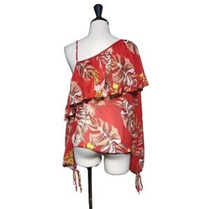 Lush Orange Floral Chiffon One Shoulder Ruffled Blouse Size Medium