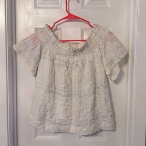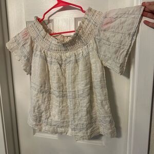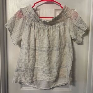 Lush SMOCKED OFF SHOULDER TOP white blue Large