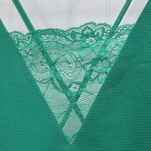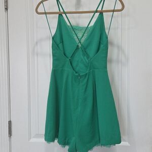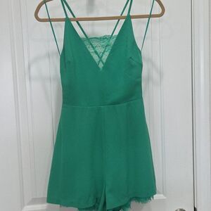 Lush Womans Green Lace Detail Romper, Small, Great condition fully lined, zippered back, adjustable straps, Actual Measurements are