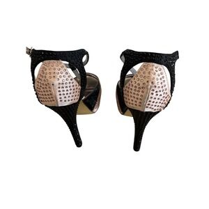 Unleash your inner diva with these captivating heels that command attention. These peep-toe platform pumps feature a dazzling display of black and pink rhinestones, meticulously arranged to create a bold and glamorous design. The sleek silhouette is elevated by a towering stiletto heel, providing both height and confidence. The adjustable ankle strap ensures a secure and comfortable fit, allowing you to dance the night away with ease. Perfect for a night out on the town, a special event, or any occasion where you want to make a statement, these heels will add a touch of sparkle and sophistication to your look.