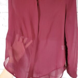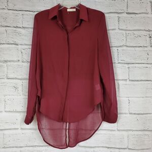 Spread collar - Long sleeves with single barrel cuffs - Front hidden button closure - Single chest patch pocket - Hi-lo hem - Back vent