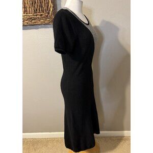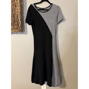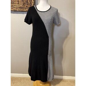 Lusso Knit Sweater Midi Dress M Medium Black Gray Cashmere Short Sleeve Washable