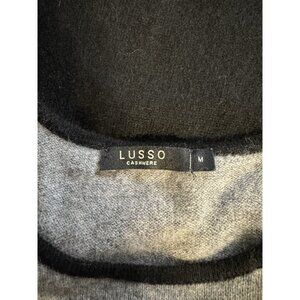 This pretty dress is from Lusso Cashmere in a womens size medium. Gray and black in color. Made of pure cashmere. Hand washable. Pullover style with stretch.