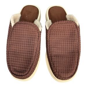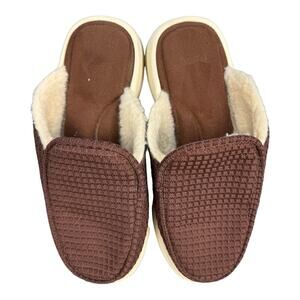 Lusso Slipper Men’s 9 Cloud Esto Brown Sherpa Slide Waffle Knit Comfort