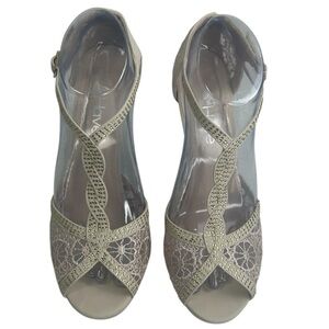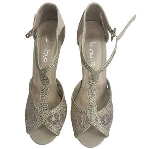 Lust Have HY-5 Women’s SZ 8 Open Toe Heels Lace Crochet Platform Crystal Sandals