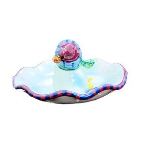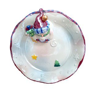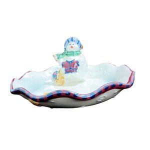 Luster Candy Dish With Attached Snowman Christmas Dish Winter 7"
