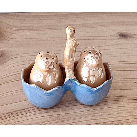 Salt & Pepper Blue Lusterware Chicks In Eggs Salt And Pepper Set