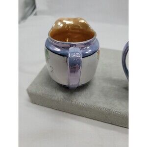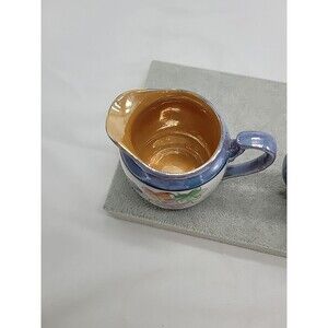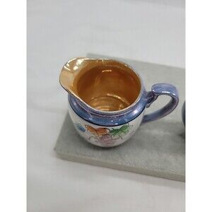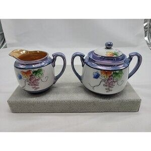 Lusterware Cream and Sugar Set Flowers Leaf Japan Hand Painted 4" Blue