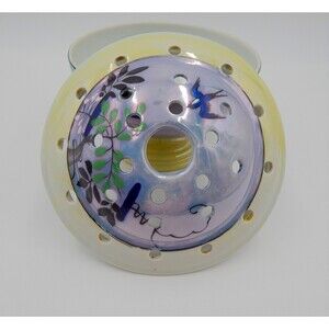 Lusterware Flower Frog Rim Domed Hand Painted Japan Birds Leaves Purple Green