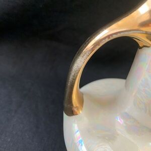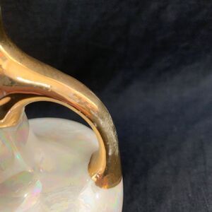 Lusterware Iridescent Ceramic Bud Vase Pearl China Double Gold Handle 1930s Vtg