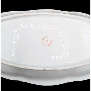 This exquisite vintage lusterware serving tray has a delicate pink and red rose design, perfect for adding a touch of elegance to your table setting.