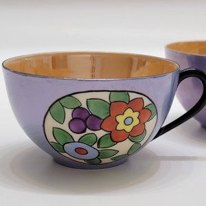 Lusterware Tea Cups Porcelain Blue Lavender Hand Painted Japanese Meito China