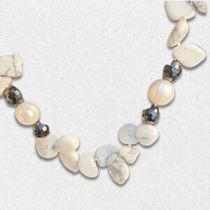#WhiteHowlite #PearlJewelry #GlassBeads #StatementNecklace #ElegantStyle