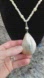 The seashell is encased in silver (which may be Sterling or not. it is not Marked) and there is a cultured pearl on the inside of the seashell pendant.