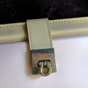 Elegant and delicious soft lustrous pink patent leather Flora Louis handbag purse, trapezoid shape, made in Florence, Italy, circa vintage 2008. Includes original brand tag stating price ($795) and dustbag. Size: 16" at base x 6" high plus 8-1/2" carry strap. Very good condition. The chrome hardware shows a little normal pitting on the clasp and external zipper pull but almost none on the four sweet feet, hinges and internal zippers. The single buff leather strap is in perfect condition; the bottom of the bag is near perfect, no marks. Inside, the liner, which has two zippered pockets and one open pocket, is in very good condition overall; there is a minor make-up stain on the liner over near the left hinge (see picture). The hinges are in great shape, the zippers work smoothly though you have to be gentle with the external one. The fantastic trapezoid shape, overall construction and gorgeous color are so desirable, this is one of those life purchases from a company whose handbags are especially coveted by fans for their quality and style.