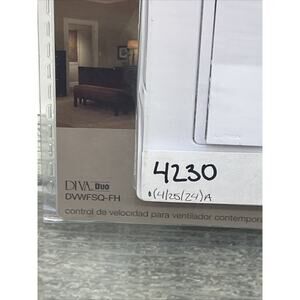 Lutron 3 Way Contemporary Fan Control White, 3 Speed, 120V, DVWFSQ-FH. {1}.