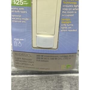 The Lutron Maestro Occupancy Sensor Switch in Light Almond color, model MS-OPS2H-LA, is a smart home-compatible light switch designed by the reputable brand Lutron. This switch detects occupancy and adjusts the lighting accordingly, providing energy savings and convenience. Its sleek design and compatibility with Lutron smart home systems make it a practical and stylish addition to any home. Thank you for shopping with Integrity Sales. L.