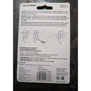 The product is a Lutron switchplate wallplate in a gloss finish with a stainless steel color. It has never been opened, in new condition.