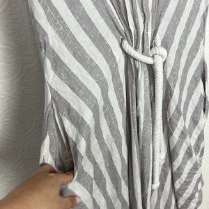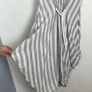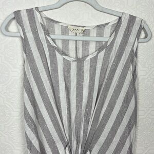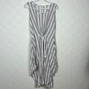 Luukaa 100% Linen Dress Tunic Sleeveless Lagenlook Tie Waist Stripes Light