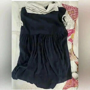 Luukaa Lightly Sheer High Low Tunic Dress Contrast High Collar & Sleeve Black 6 Shipped via USPS
