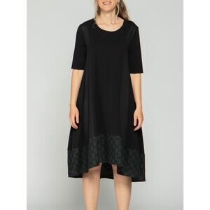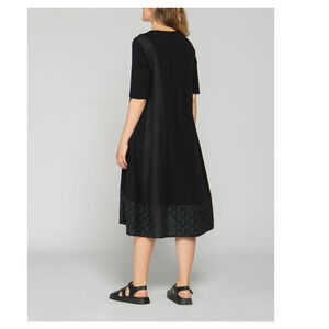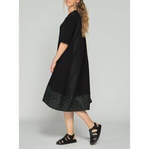 Luukaa Women Black Midi Cotton Dress Size 10 Green Stitch Short Sleeve NWT