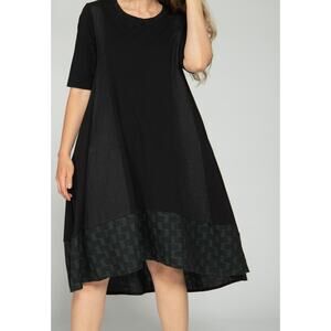 Luukaa Women Black Midi Cotton Dress Size 6 Green Stitch Short Sleeve NWT