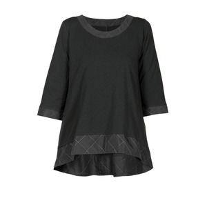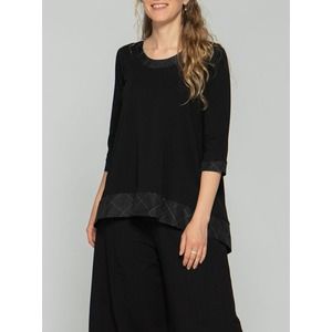 Luukaa Women's Hi-Low Black Tunic Top Size 14 White Stitch Cotton Flowy Chic NWT