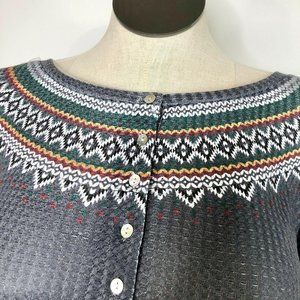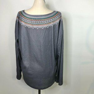 Design: Gray waffle knit long sleeve top with ski sweater type design at top, Henley styling