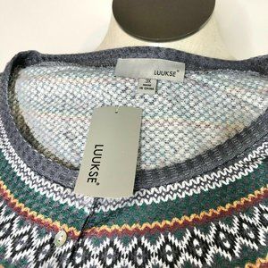 Luukse Womens 3X Gray Lightweight Henley Top with Ski Sweater Look Long Sleeve