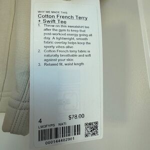 Luulemon Cotton French Terry + Swift Tee NWT, Size 4