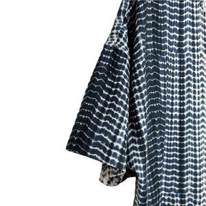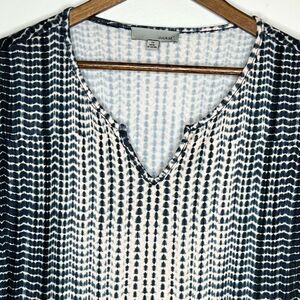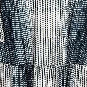 This is a great versatile peplum style top that you can dress up or down. The blues and cream in the tie dye are really pretty. Size 1X.