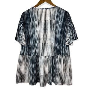 Luuske Tie Dye Peplum Ruffle Short Sleeve Shirt Blue & Cream Size 1X Boho