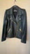 Lux leather biker jacket from Luv Aj with eye-catching gold-tone hardware. Does double duty as a vest with covered, zip-off sleeves. Trimmed with a classic, angled zip front and a snap-down collar, zippered sleeves.
