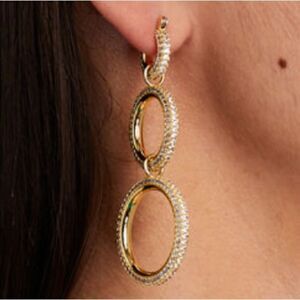 Luv Aj Pave' Gold Plated Drop Earrings. Excellent Pre-Owned Condition (ECU)! ***These earrings originally had another set of pave hoops on the top. One was lost so I replace both of them with sterling silver gold overlay huggies****. Just as beautiful! Huggies are super comfortable!