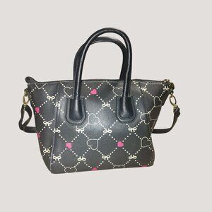 Luv Betsey Black Pink Heart Print Handbag Bag Satchel Detachable Strap Stylish