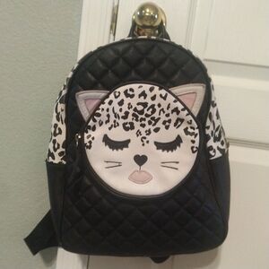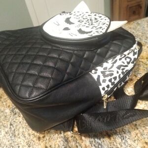 Luv Betsey Johnson Kitsch Backpack Leopard Cat Medium Bag Purse Black White