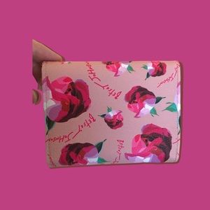 ๐ Luv Betsey | Lana Flap Peachy Vegan Leather Wallet Pink Multi Rose ๐น Pattern