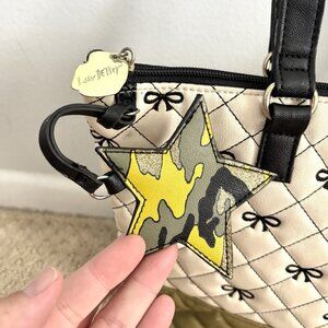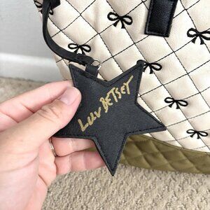 Luv Betsey by Betsey Johnson Purse! Cream and green with printed bows all over, quilted texture, zip closure, star tag, interior pouches.