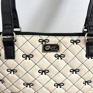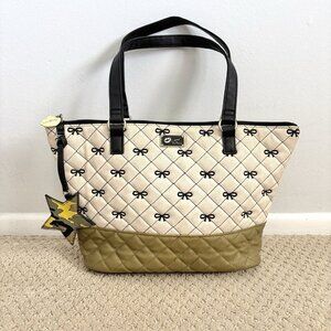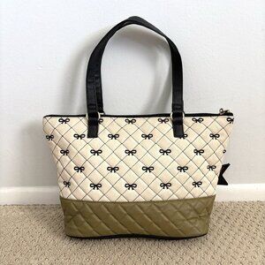 Luv Betsey by Betsey Johnson Cream and Green Bow Pattern Quilted Tote Purse
