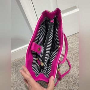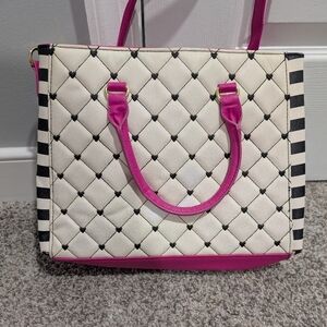 Luv Betsey by Betsey Johnson Pink and Cream Quilted Satchel Bag w/Heart Details