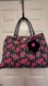 Roomy Luv Betsey by Betsey Johnson quilted floral weekender! Pink roses on black and white stripes with a fuzzy pom-pom charm. This tote expands and holds a lot, very large. Perfect for travel, gym, or as a stylish baby diaper bag.