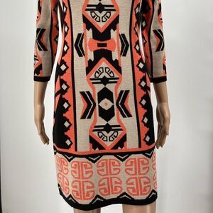 Luv Knit Casual Dress Geometric Print Multicolor Size M Pre-owned Great Condition Approximate Measurement:Shoulder 14”/Pit 16,5”/3/4 Sleeve 18”/Shoulder to Hem 34,5