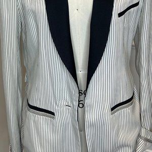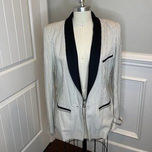 Lux Balenciaga Striped Spring Summer Shawl Collar Blazer Bllack & White