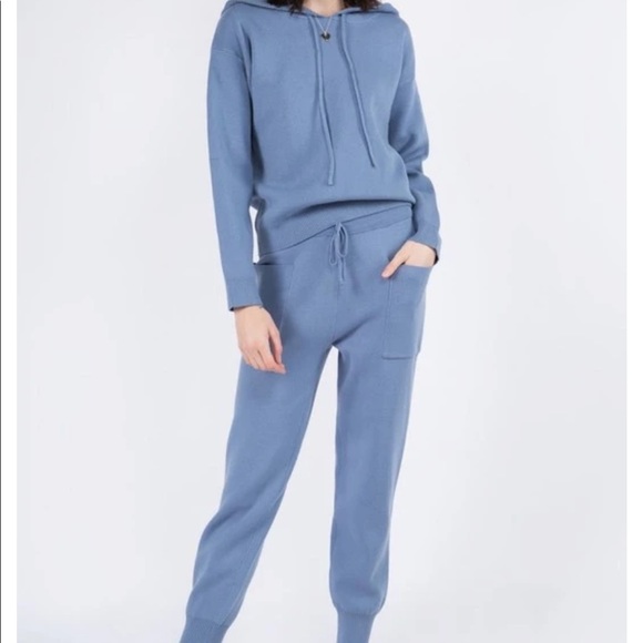 Knit Pullover Hoodie with Long Soft Sleeves; Soft Knitted Pants with Pockets.