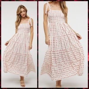 Lux Brand Lined Maxi Dress Smocked, Ruffled Tiers, Wide Shoulder Ties & Pockets