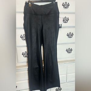 Lux Cracked Faux Leather Flare Leggings. Features crossover waistband and cracked faux leather finish. Love these but too long for me. I am 5’4”.