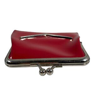 Lux De Ville Red Faux Patent Leather Coin Purse Silver Metal Kiss Lock Frame