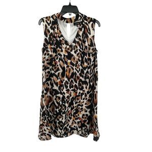 Lux II Women’s Leopard Print Sleeveless Keyhole Neck A-Line Dress Medium VERY