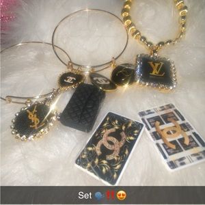 This set is beautiful with lux charms .It comes with two adjustable bangles one mon tarnish 18k gold filled beaded bracelet and set of 18k gold filled earrings .,,, 18k gold filled non tarnish so this set will last a long time with proper care .., These beads are expensive and so are the charms the price is final .,